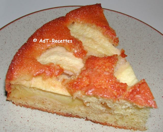 Verser dans le moule, enfoncer les morceaux de pommes en rosace et faire cuire 30 minutes au four. Laisser tiédir 10 minutes et démouler sur un plat. Décorer de sucre glace et éventuellement de feuilles de menthe.
